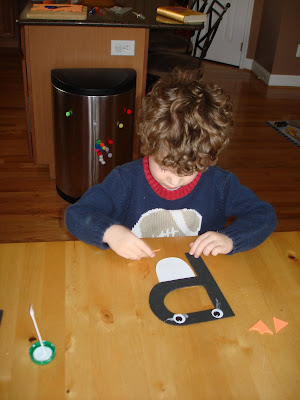 Mason then decorated a Shamrock shape green. Template for the Shamrock found at All Kids Network.